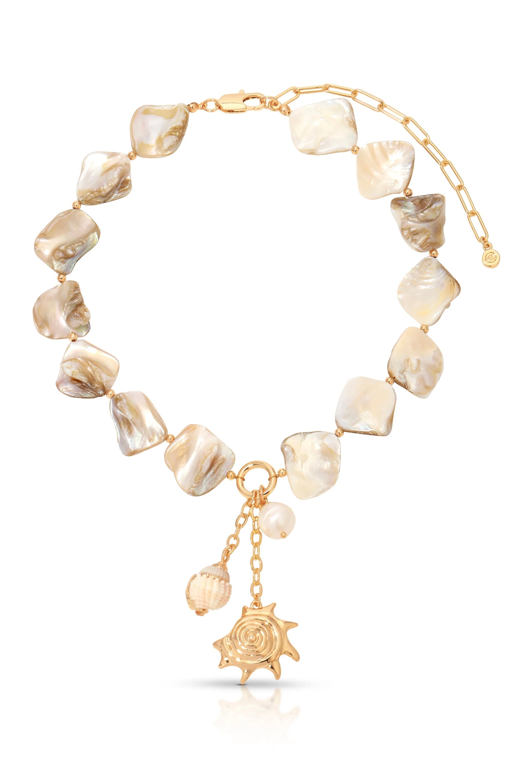 The True Shell Necklace features lustrous shells lining your neckline with ocean-inspired hanging charms.