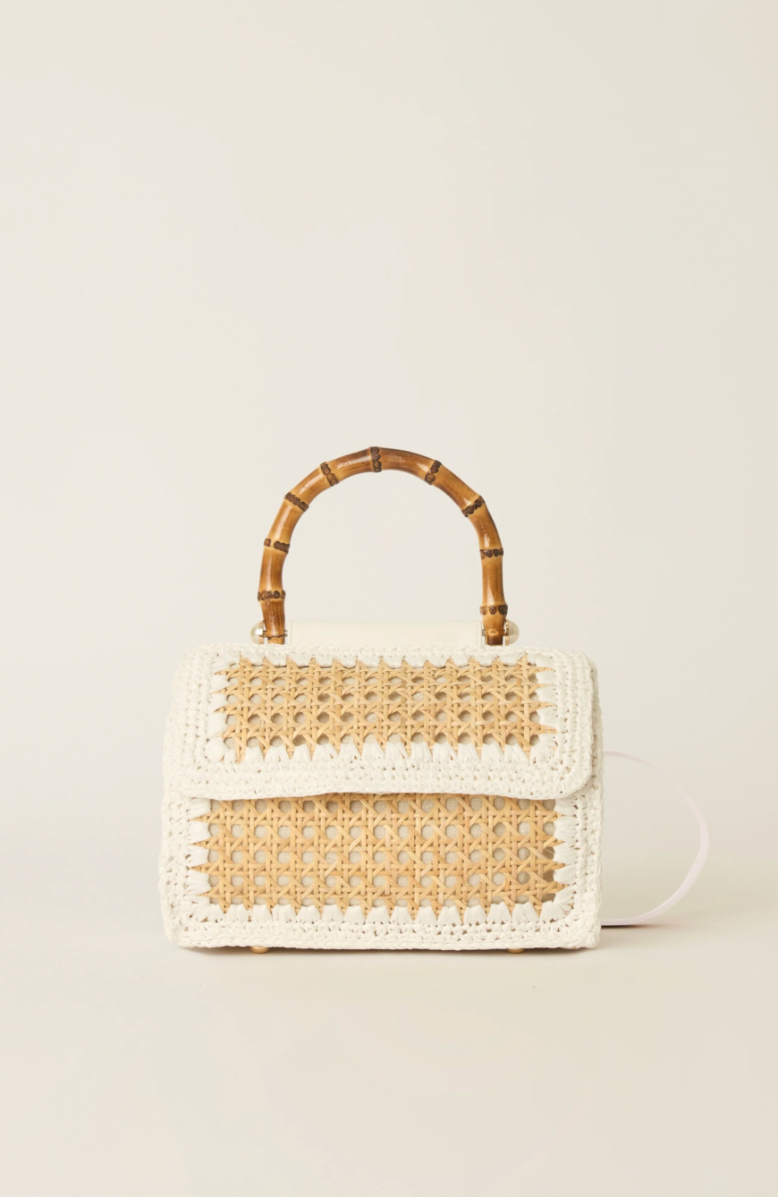 The Elodie Bag brings a refined touch to resort styling. With cane-inspired weaving and a signature bamboo handle, it strikes the perfect balance of natural texture and polished design. Lightweight, structured, and versatile, it is an effortless choice for sunny days, weekend outings, and dressed-up evenings.