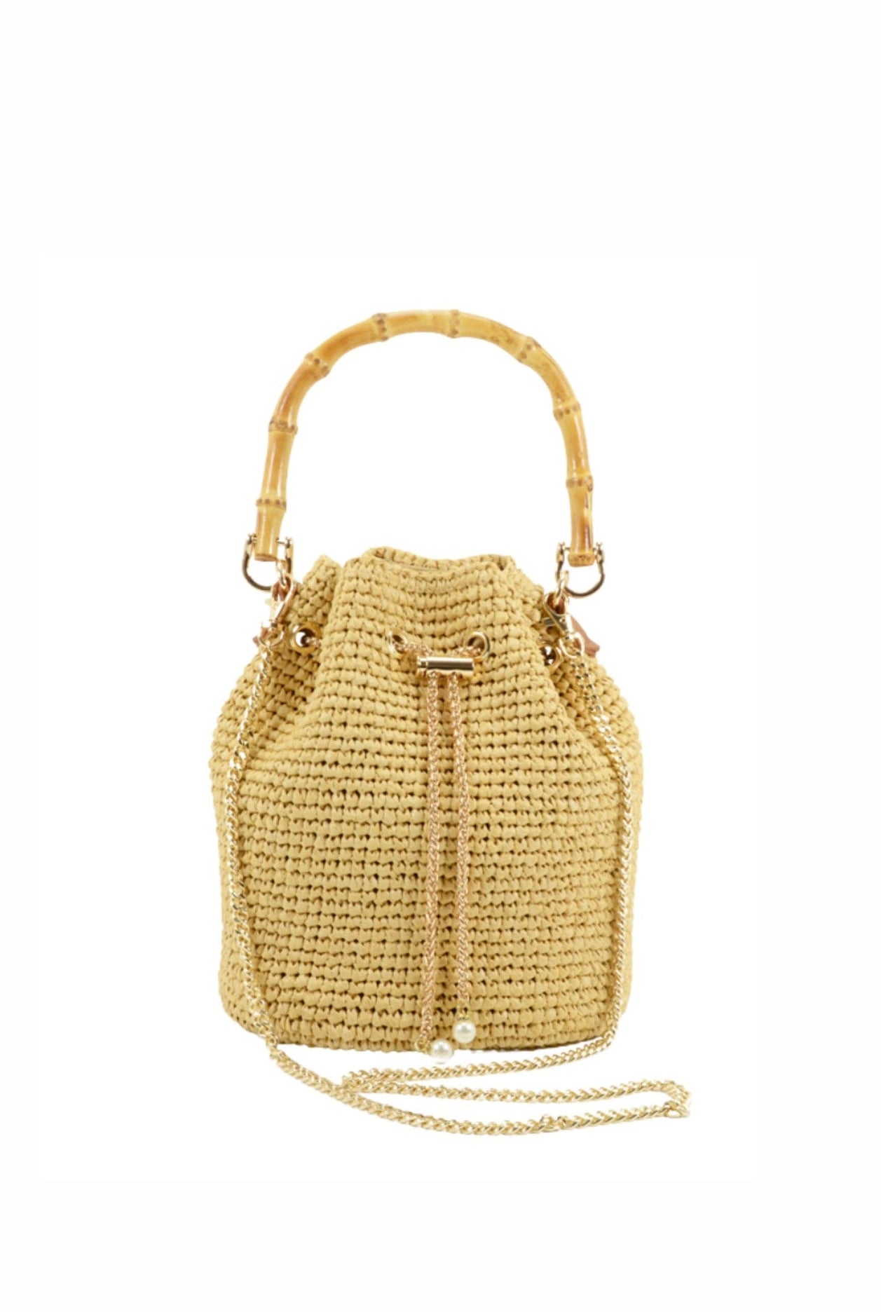 Straw Bucket Bag with Bamboo
