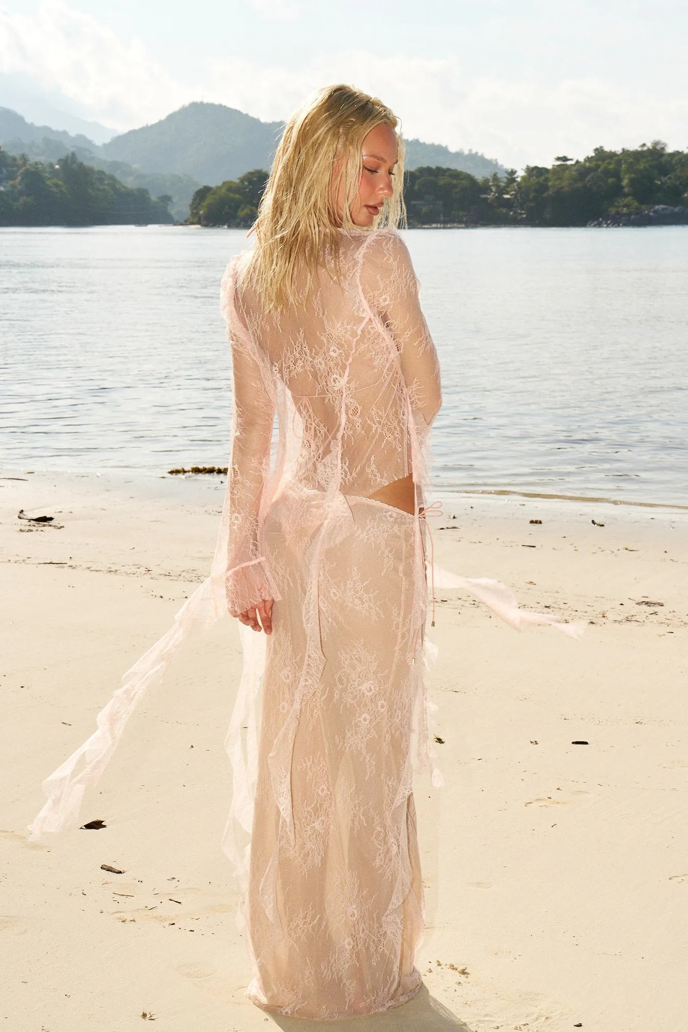 The Alana shirt is the ultimate delicate top, exuding elegance and charm for unforgettable occasions. The Alana shirt features a fitted, semi-sheer lace design with long sleeves and tie-front details.