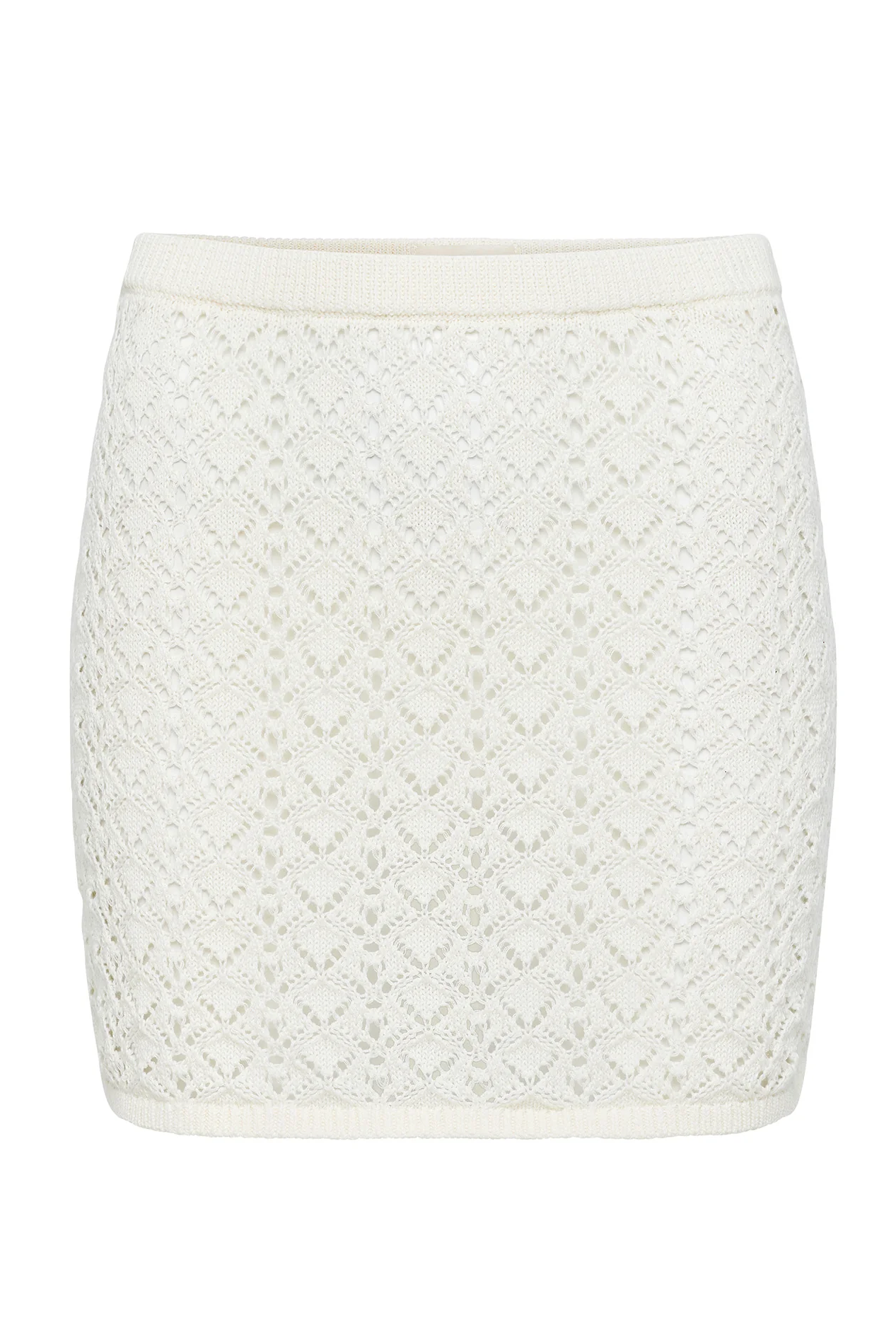 The Nova Skirt is a slim, unlined mini with an easy elastic waistband and ribbed waist and hem. Crafted from an unlined cream crochet knit, it brings a tactile, airy finish that feels both artisanal and modern. Simple, sleek, and ready to pair with the matching Nova Top.