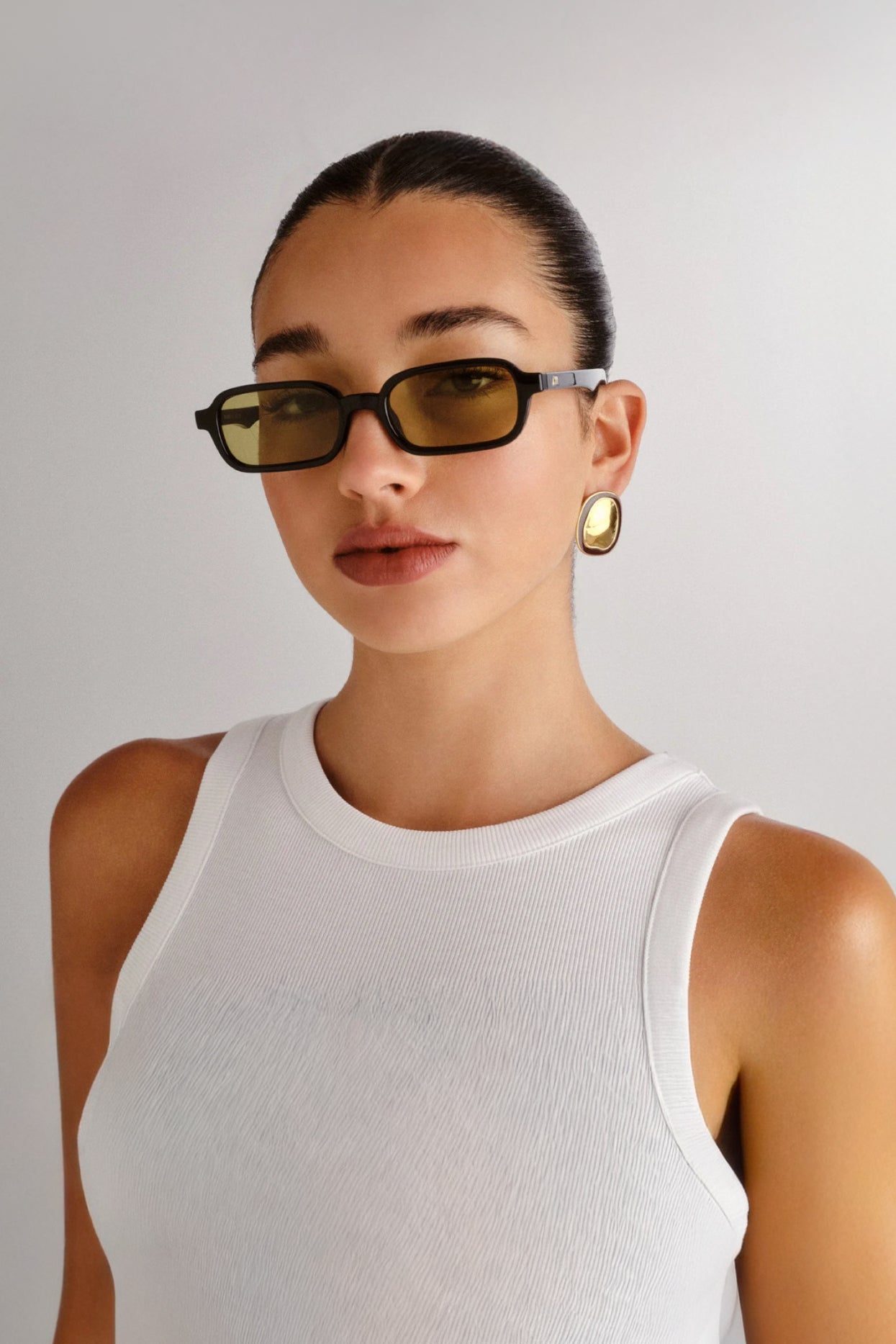 Designed with narrow proportions, our PILFERER shrunken rectangular frame offers a unisex fit. Featuring a fine noughties-inspired look, this sunglass features discreet Le Specs metal stud detailing on both temples.